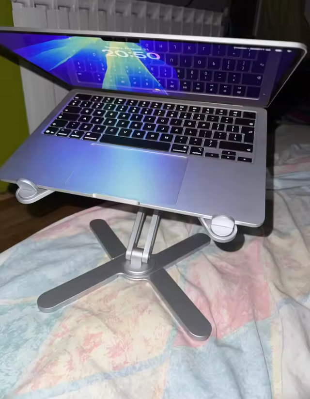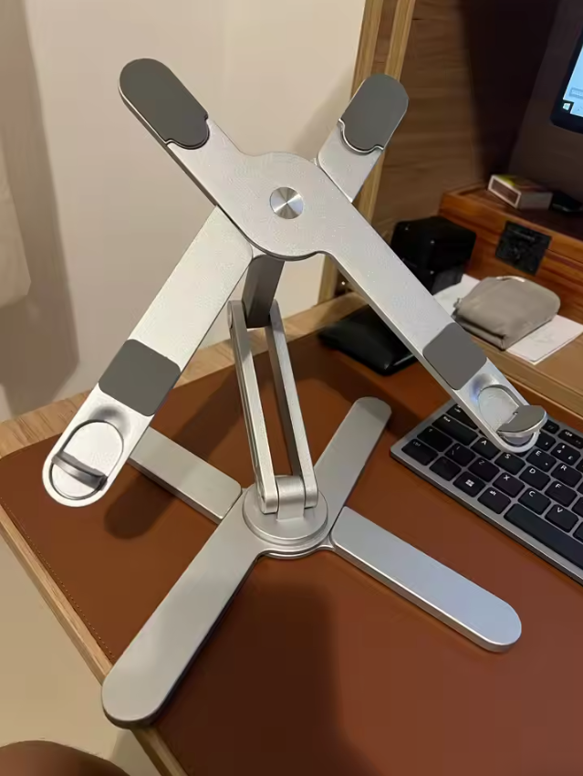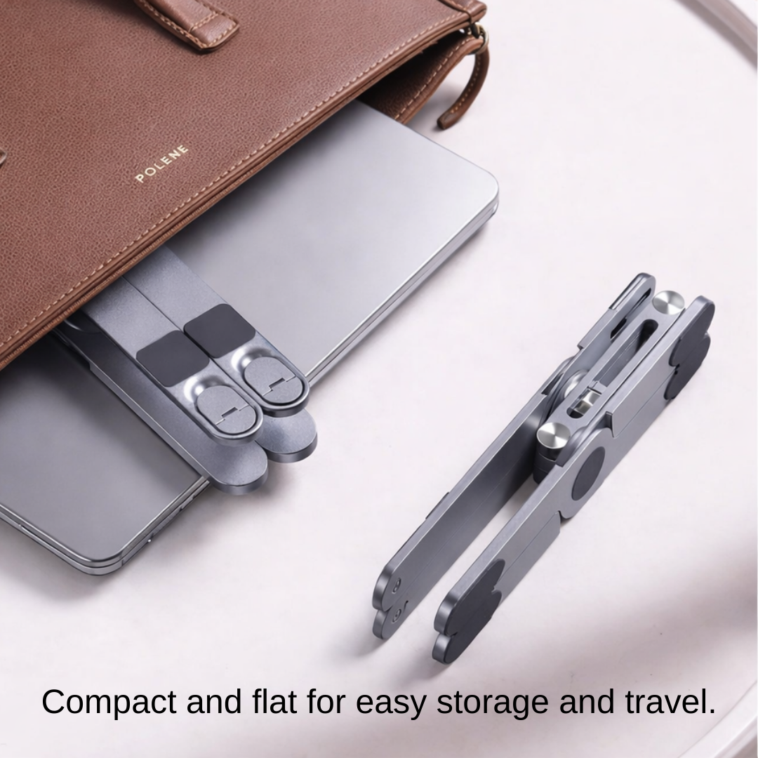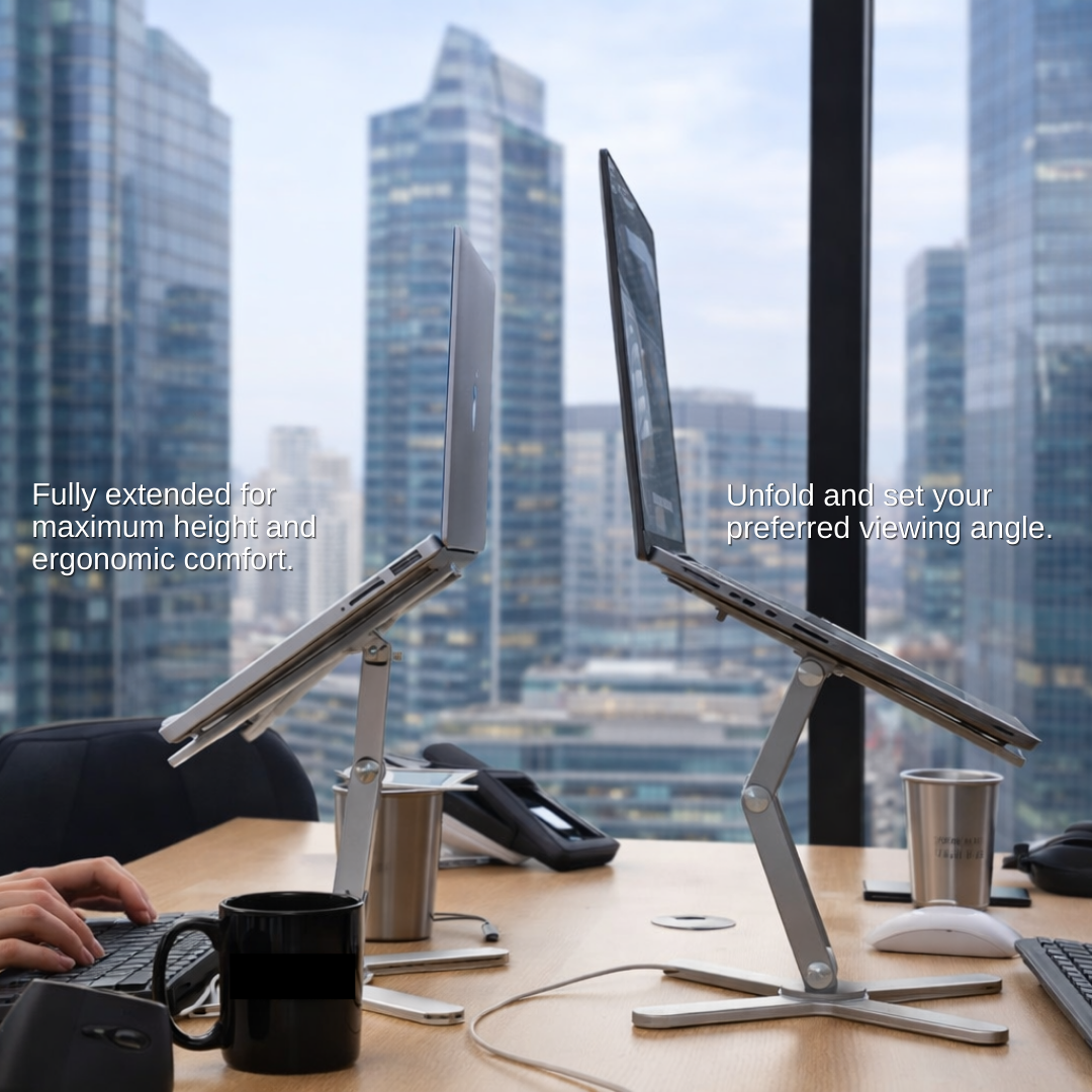 About 3 seconds. Unfold it, set your angle, and you’re ready. No tools, no assembly.