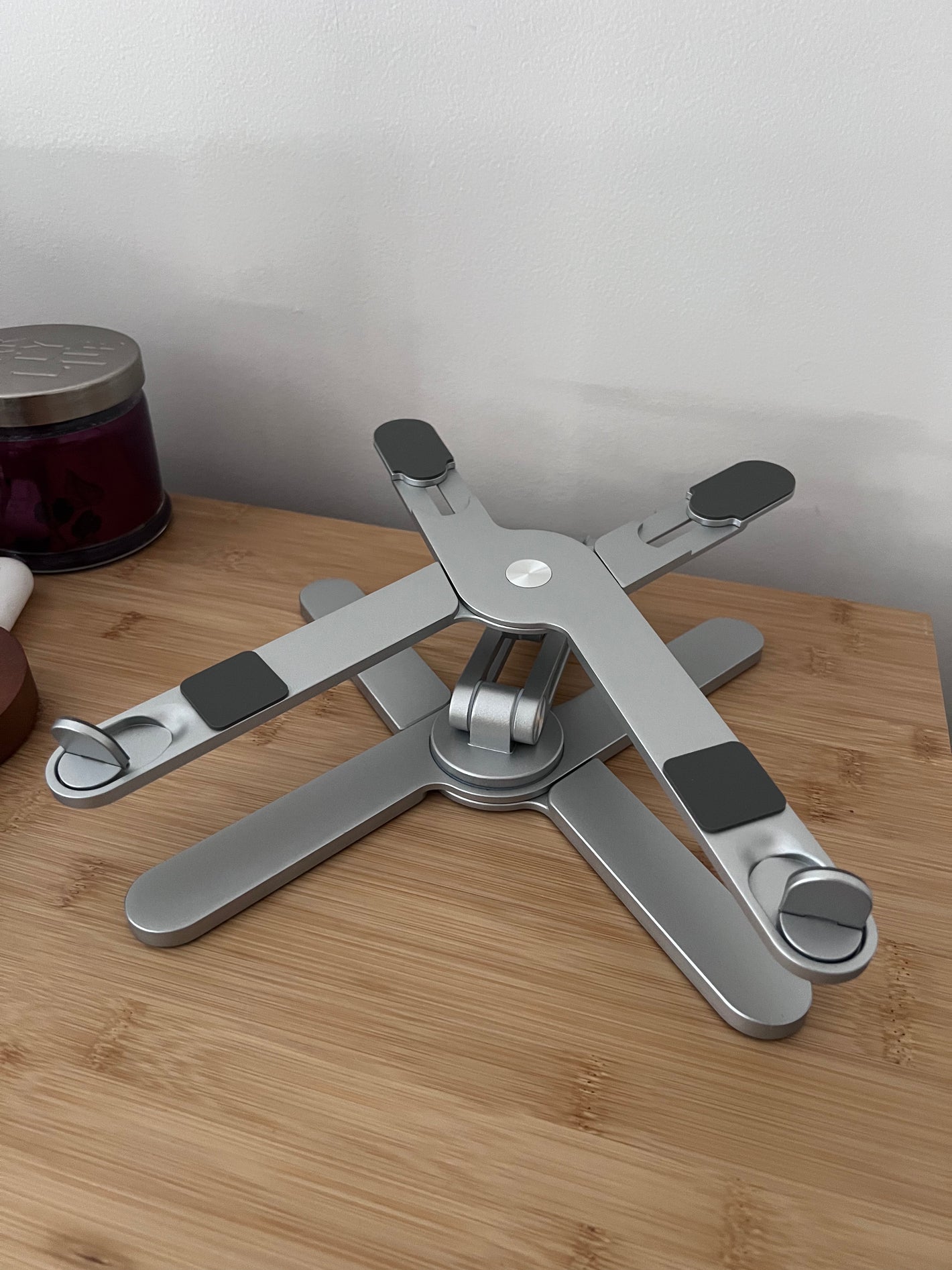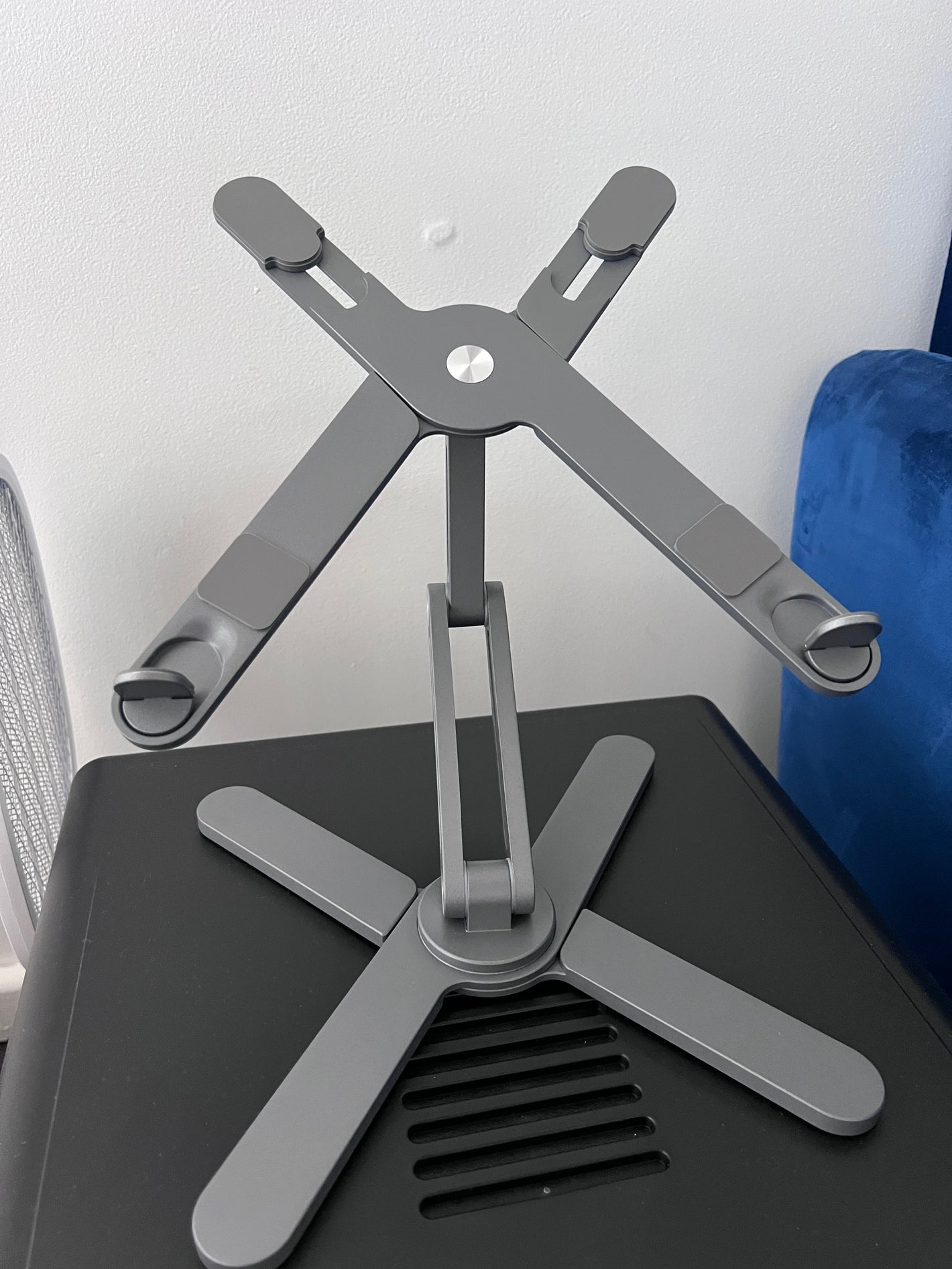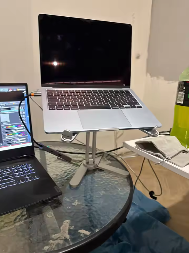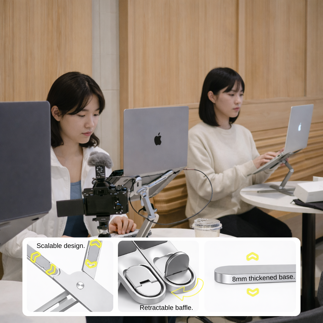 About 3 seconds. Unfold it, set your angle, and you’re ready. No tools, no assembly.