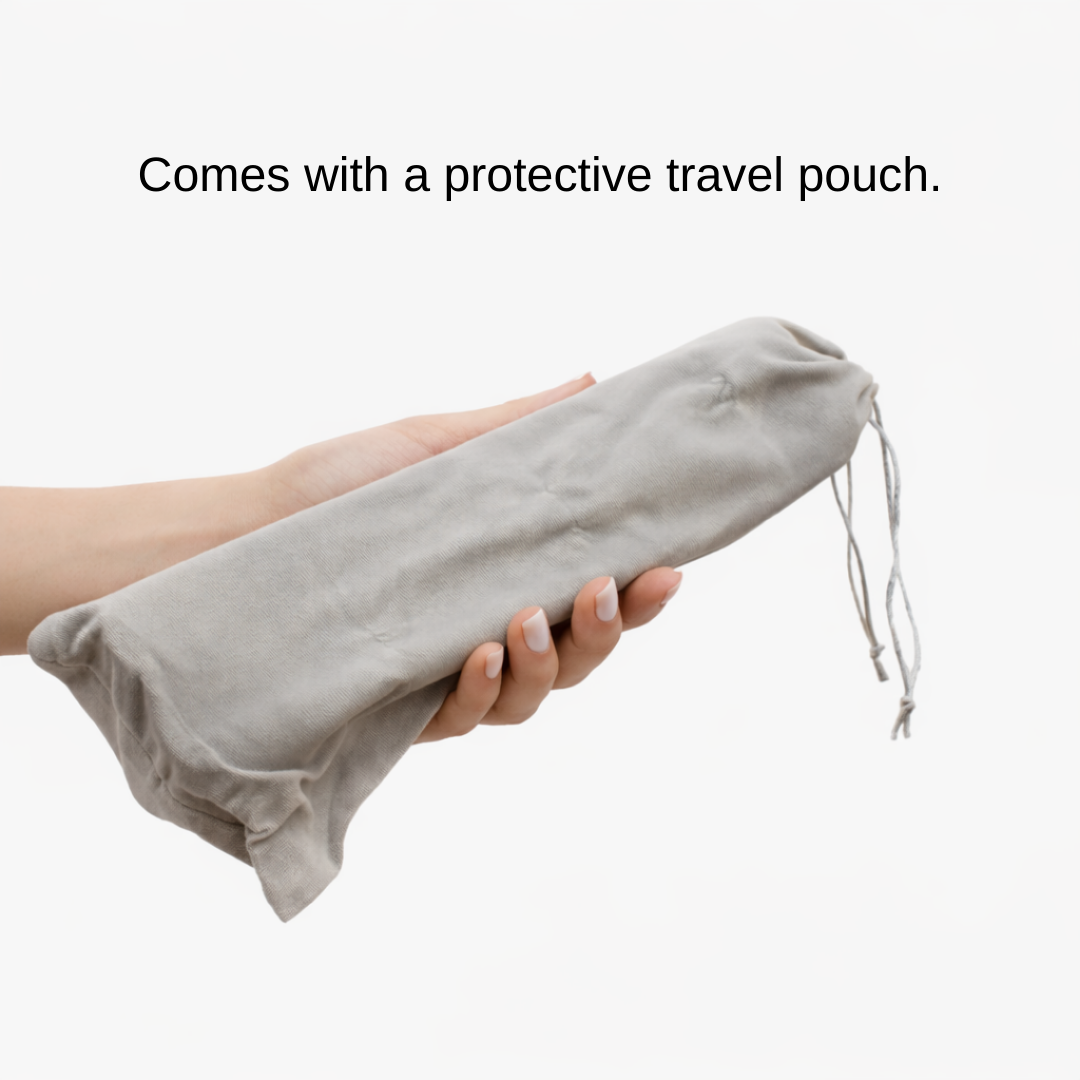 Wipe it down with a soft, damp cloth. The anodized aluminum finish is easy to maintain and helps resist fingerprints. Each stand also comes with a travel pouch for storage.